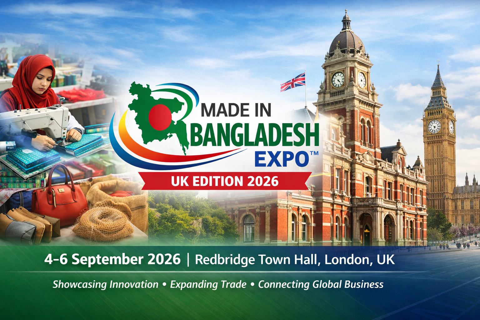 The Made in Bangladesh Expo™ – UK Edition 2026 is a premier international trade and investment platform that will take place at Redbridge Town Hall, London, United Kingdom, from 4–6 September 2026, running daily from 12:00 PM to 10:00 PM.